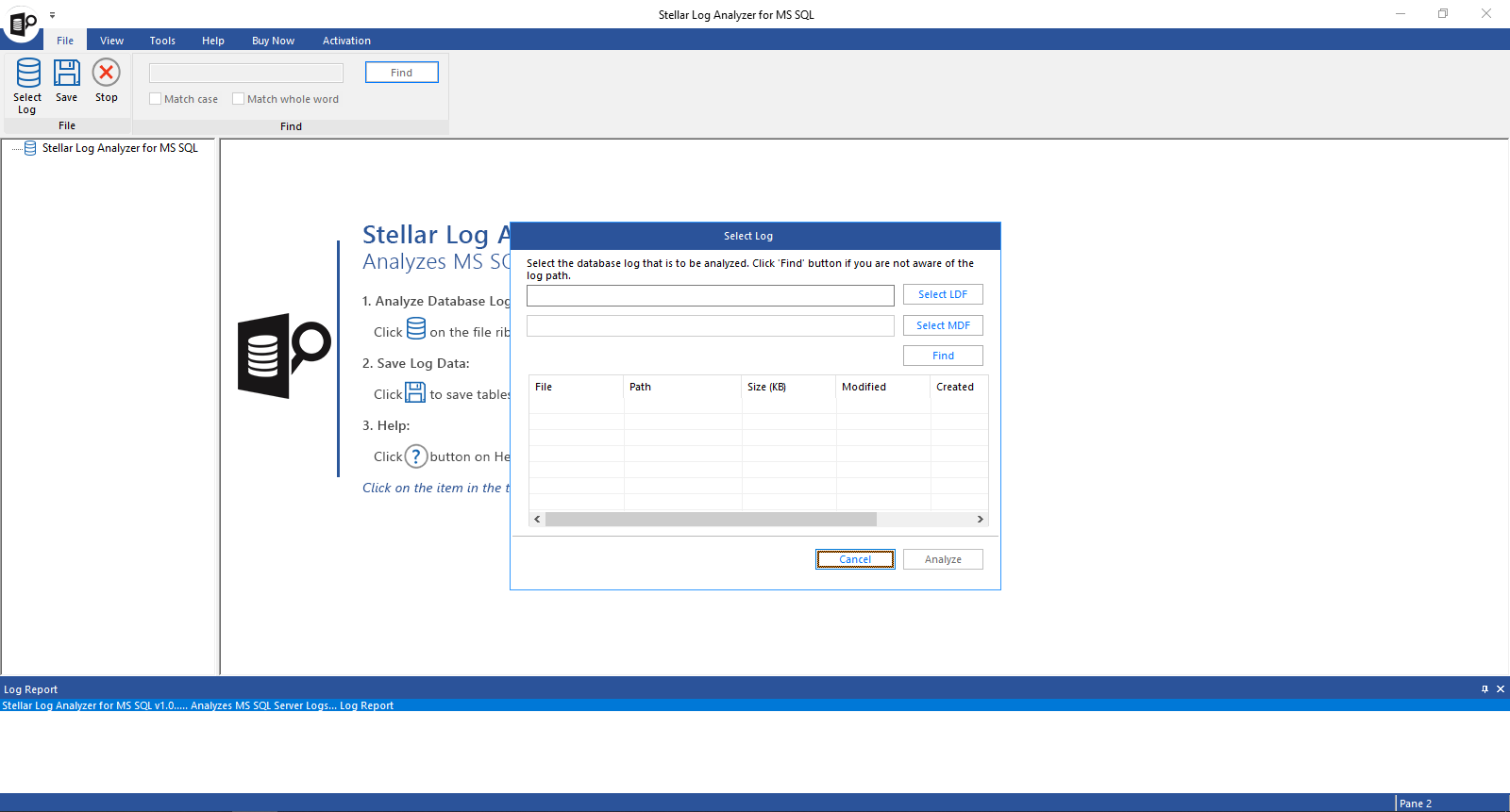 • Download the demo version of Stellar Log Analyzer for MS SQL software.